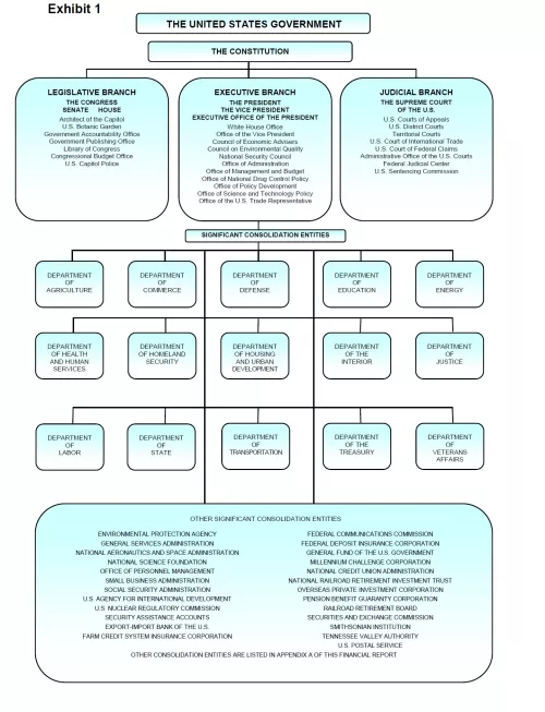 The Government's fundamental mission is derived from the Constitution: "…to form a more perfect union, establish justice, insure domestic tranquility, provide for the common defense, promote the general welfare and secure the blessings of liberty to ourselves and our posterity." The Government’s functions have evolved over time to include health care, income security, veterans benefits and services, housing and transportation, security, and education. Exhibit 1provides an overview of how the U.S. government is organized.