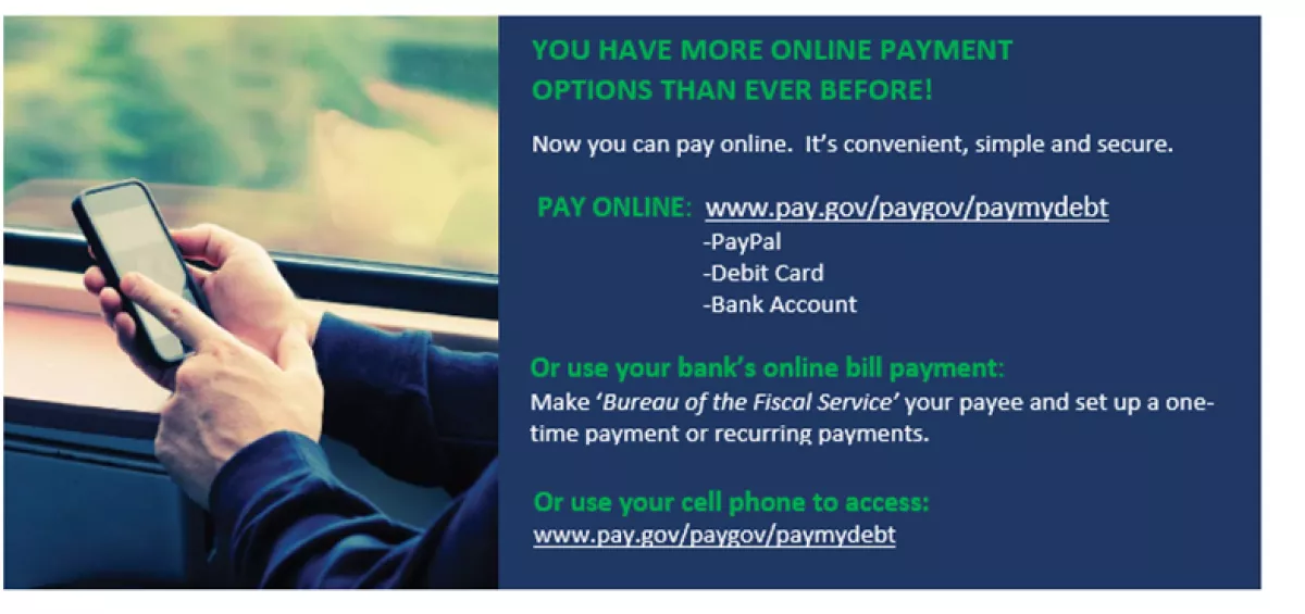 - Go to www.pay.gov/paygov/paymydebt