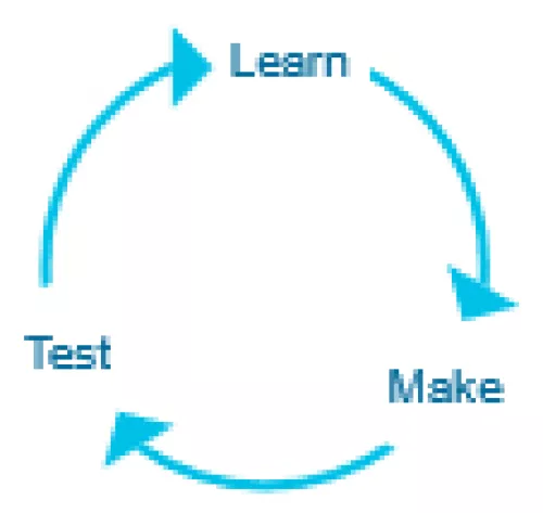 Our user-centered design process starts with user research (learn), applies it to sketches, page designs, and functionality (make), and then returns to users for testing (test). This cycle continues throughout the design and build phases until project completion. For more about the user-centered design process in general, visit www.usability.gov.