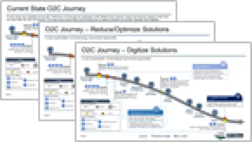 A Transformation Blueprint can be used to help visualize key process pain points, and associated reduce, optimize, and digitize solutioning opportunities |