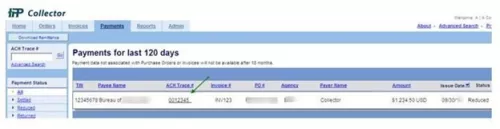 - Locate the invoice number and select the ACH Trace # link.