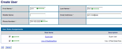 In the User Roles Assignments section, select the box specifying the role you are assigning to the new user.