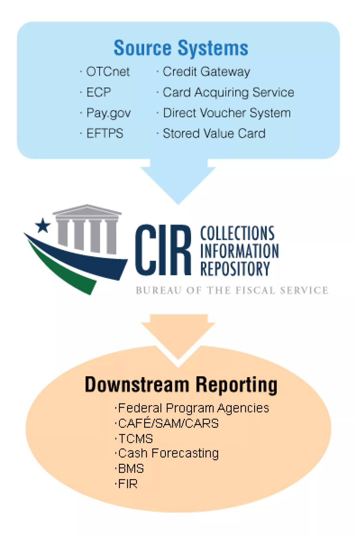 Collection Information Repository (CIR) has multiple collection sources that provide agencies with data every day. To understand how the data flows to and from CIR, use the infographic and steps below.