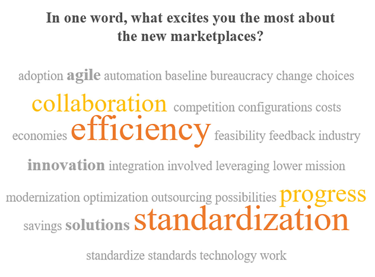 When asked “In one word, what excites you the most about the (QSMO) marketplaces?”, the top answers included collaboration, efficiency, progress, and standardization. The standards as defined through FIT and the Financial Management Standards Committee will be the basis for solution requirements.